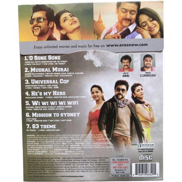 Singam 3 Tamil Audio Cds By Harris Jayaraj