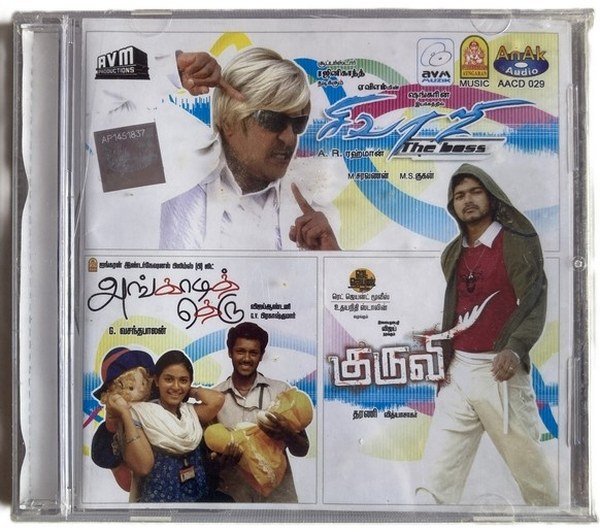 🎬 Presenting a powerful 3-in-1 Tamil audio CD combo featuring Sivaji, Angadi Theru, and Kuruvi.