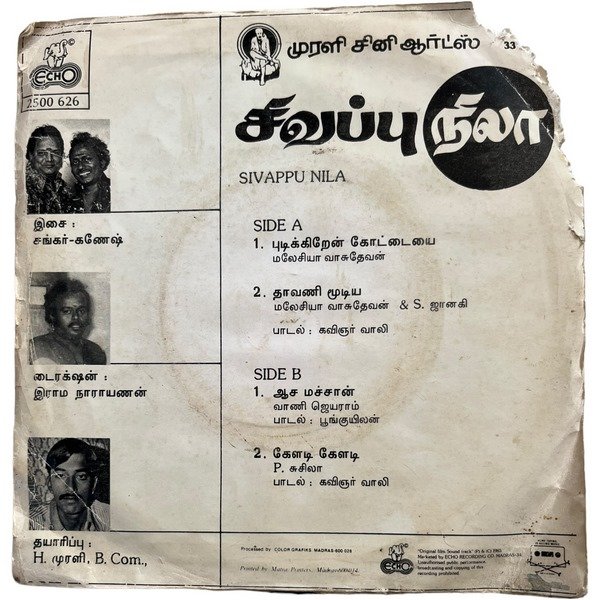 Sivappu Nila Tamil EP Vinyl Records By Shankar Ganesh