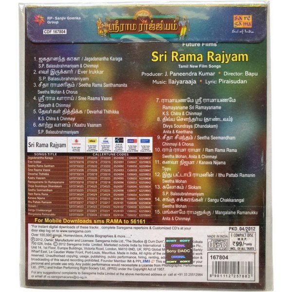 Sri Rama Rajiyam Tamil Audio Cds By Ilaiyaraaja