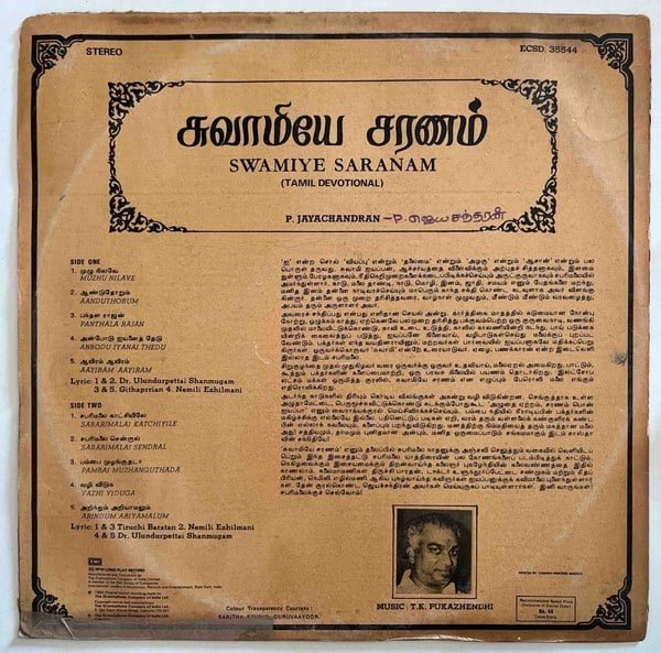 Swamiye Saranam Tamil Devotional LP Vinyl Records