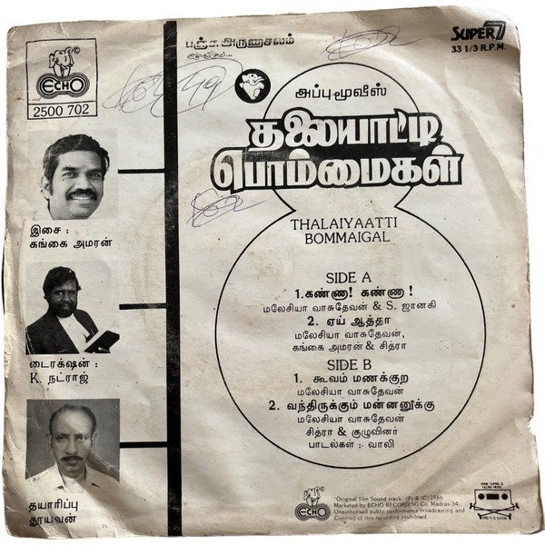 Thalaiyatti Bommaigal Tamil EP Vinyl Records By Gangai Amaran