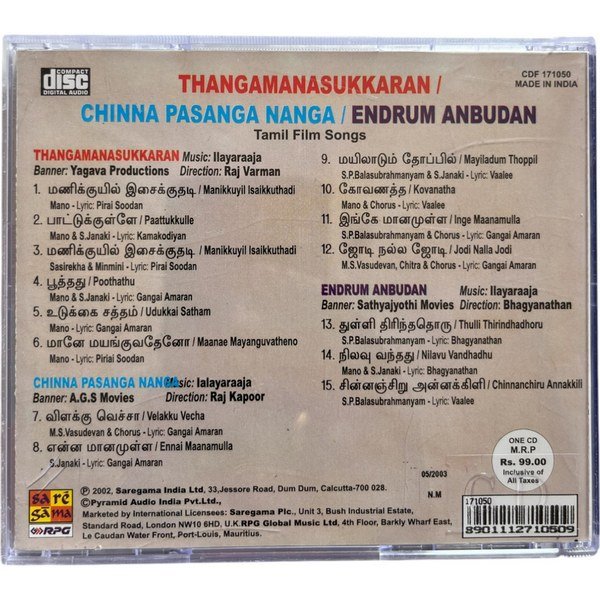 Thangamanasukaran, Chinna Pasanga Naanga, Endrum Anbudan Tamil Audio CD Condition