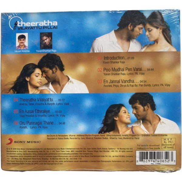 Home » Shop » Theeratha Vilaiyattu Pillai Tamil Audio Cds By Yuvan Shankar Raja *SEALED*