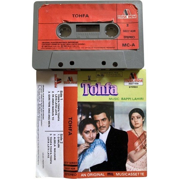 🎧 Original audio cassette of Tohfa, featuring superhit music by Bappi Lahiri. A classic Bollywood soundtrack from the 80s and a great addition for vintage cassette collectors.