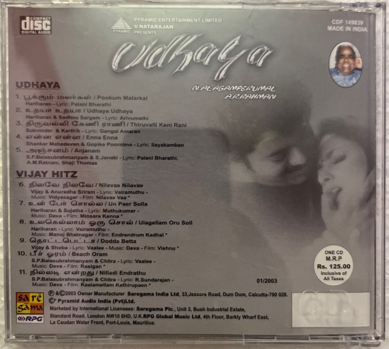 Udhaya & Vijay Hitz Tamil Audio CDs By A.R. Rahman