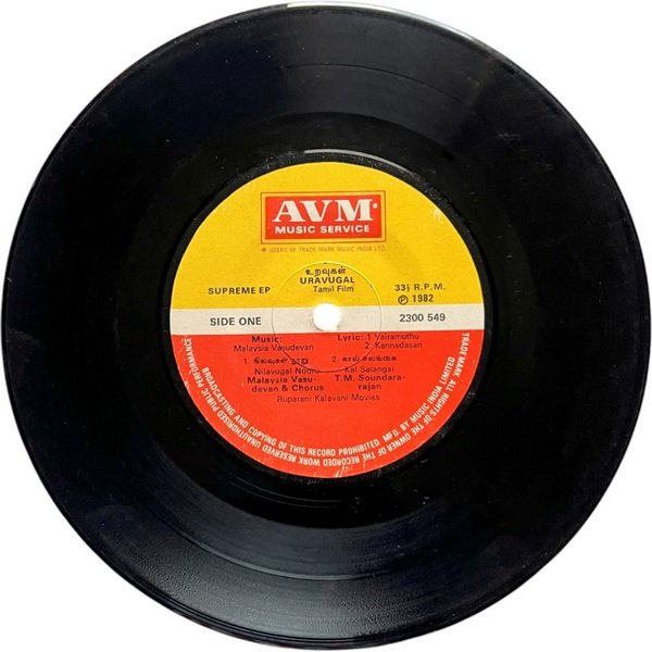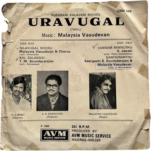 Uravugal Tamil EP Vinyl Records By Malaysia Vasudevan