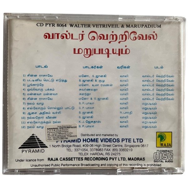 Walter Vetrivel, Marupadiyum Tamil Audio CDs By Ilaiyaraaja